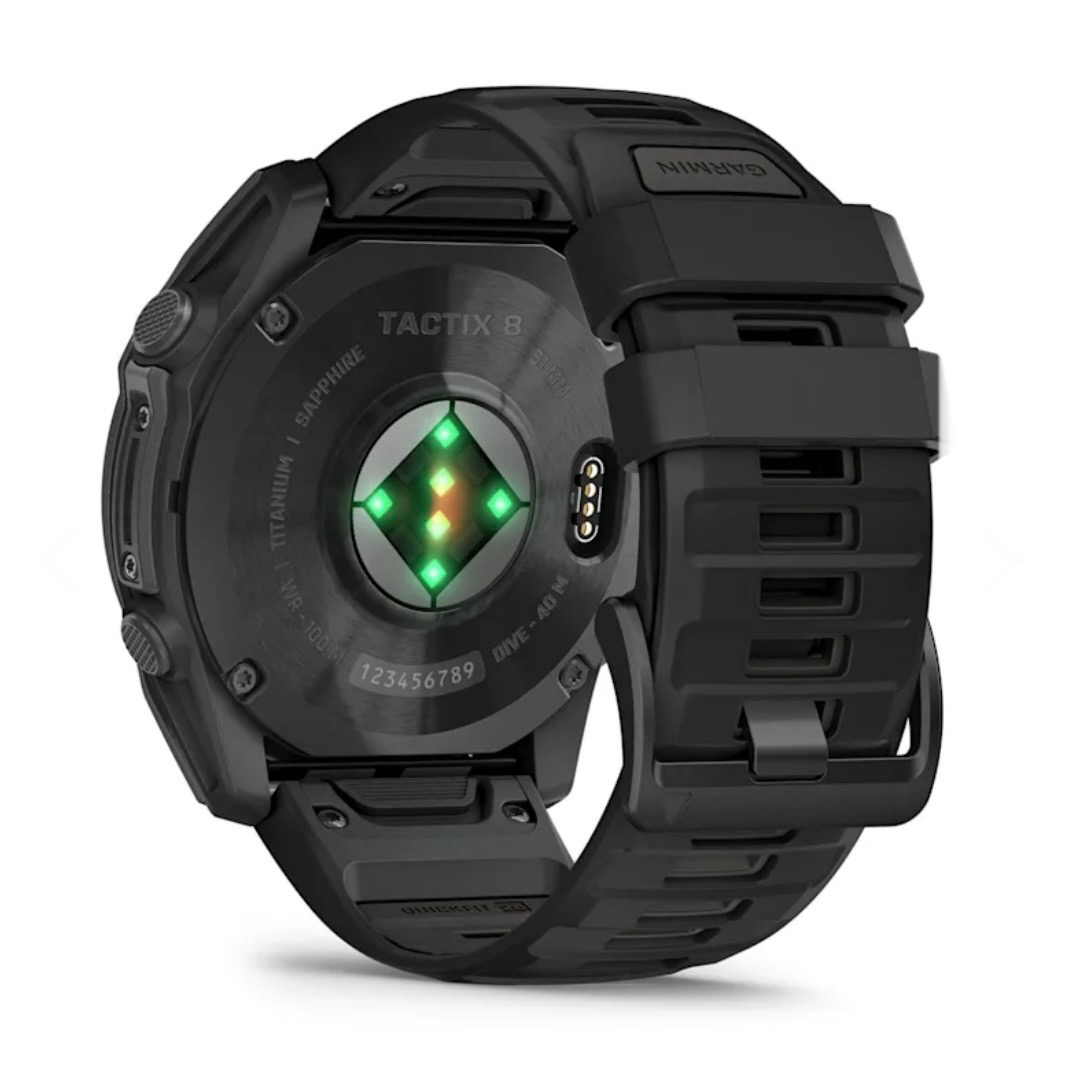 Garmin Tactix 8 AMOLED 51mm — професійний тактичний годинник із вбудованим балістичним обчислювачем Applied Ballistics Ultralight. Модель отримала яскравий AMOLED-дисплей. Корпус з DLC-покриттям та сапфірове скло гарантують витривалість у найважчих умовах
